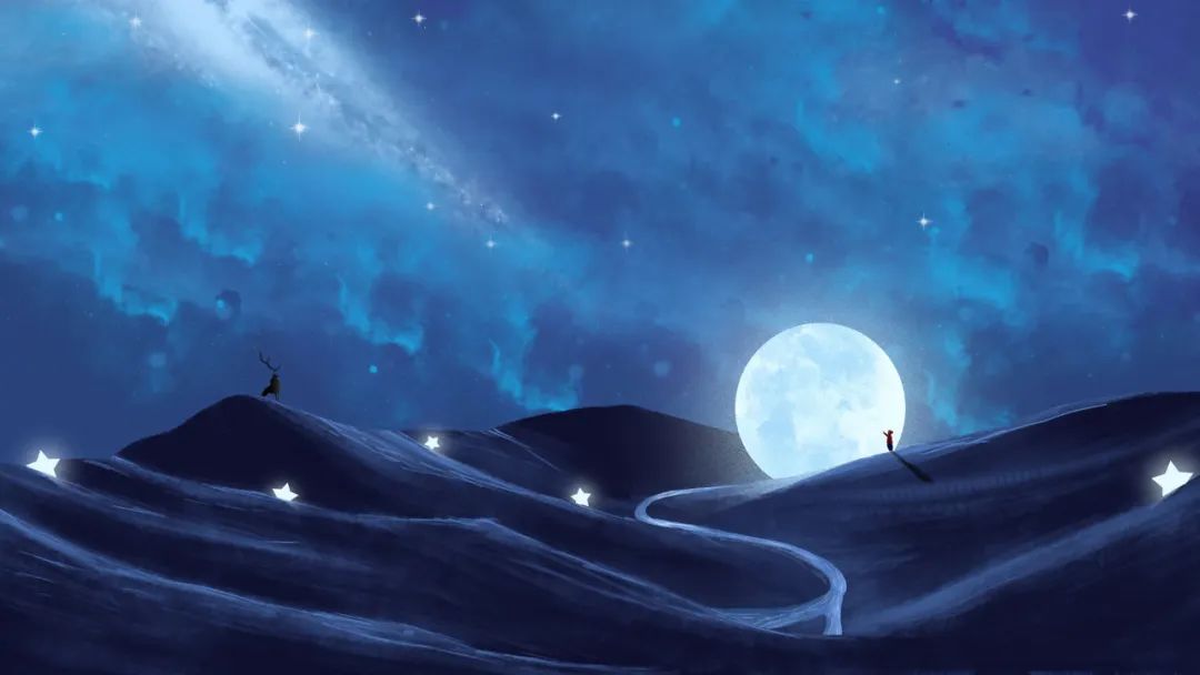 海上月亮渐渐升起,思念随着月升而起,天地共此明月,而你在思念谁呢?